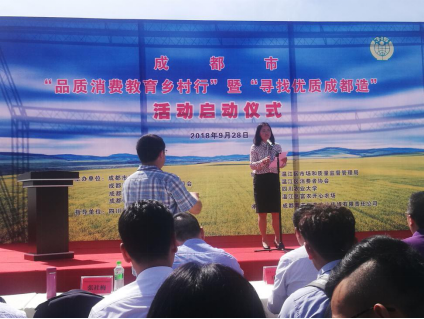 9月28日,由成都市工商行政管理局、成都市消费者协会主办的成都市“品质消费教育乡村行”暨“寻找优质成都造”启动仪式在温江区富农开心农场开展,市工商局副局长邓谊、市消协秘书长庄卫兵、中心张社梅研究员等受邀出席。